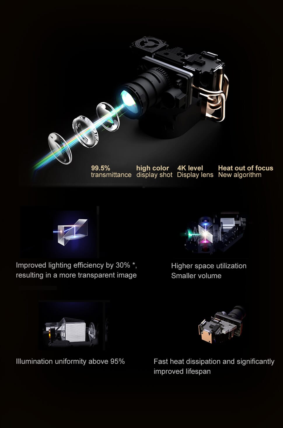 Denna projektor använder sig av Texas Instruments Ti DLP-teknologi för att leverera en bildkvalitet som är klar och färgrik, med stöd för 4K-upplösning och HDR10+ för en djupare färgupplevelse. Dessutom ger de inbyggda 5W*2 stereohögtalarna ett kraftfullt ljud för en helt omslutande upplevelse.